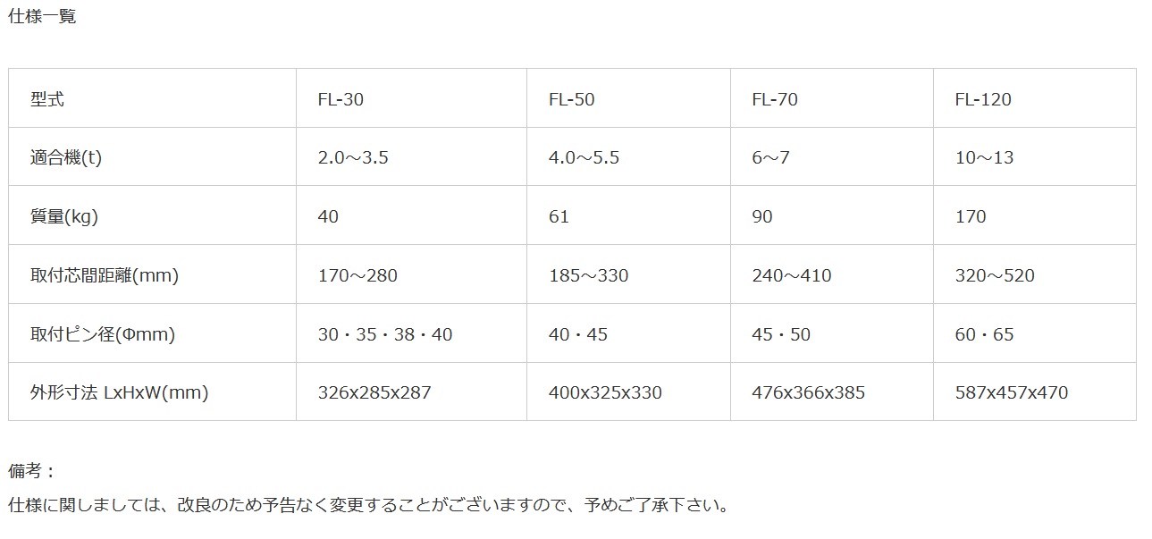 適合機 10~13t、質量 170kg 、ピン間距離 320mm~520mm